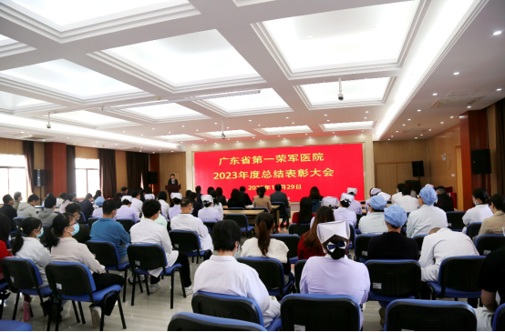 2023年12月29日,广东省第一荣军医院举行2023年度总结表彰大会,总结2023年工作,部署2024年重点工作任务。会上,在各行政科室负责人分别作了科室年度工作汇报后,曾嵘院长对医院2023年工作作了总结及对2024年工作作了部署,范佩文书记作总结讲话。会议由院专职党委副书记肖丽春主持,院领导班子和干部职工等100余人参加了会议。