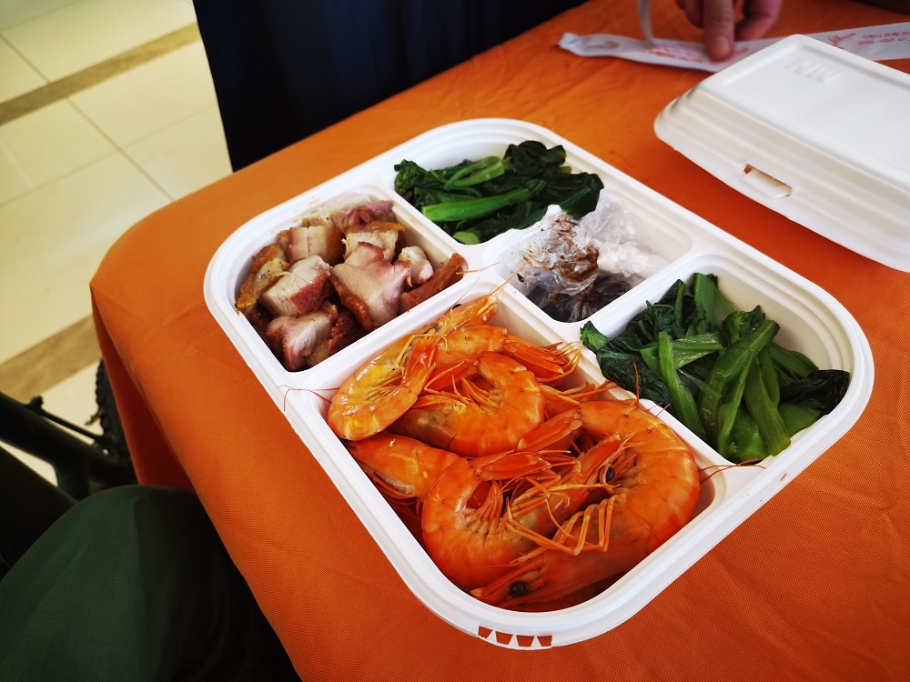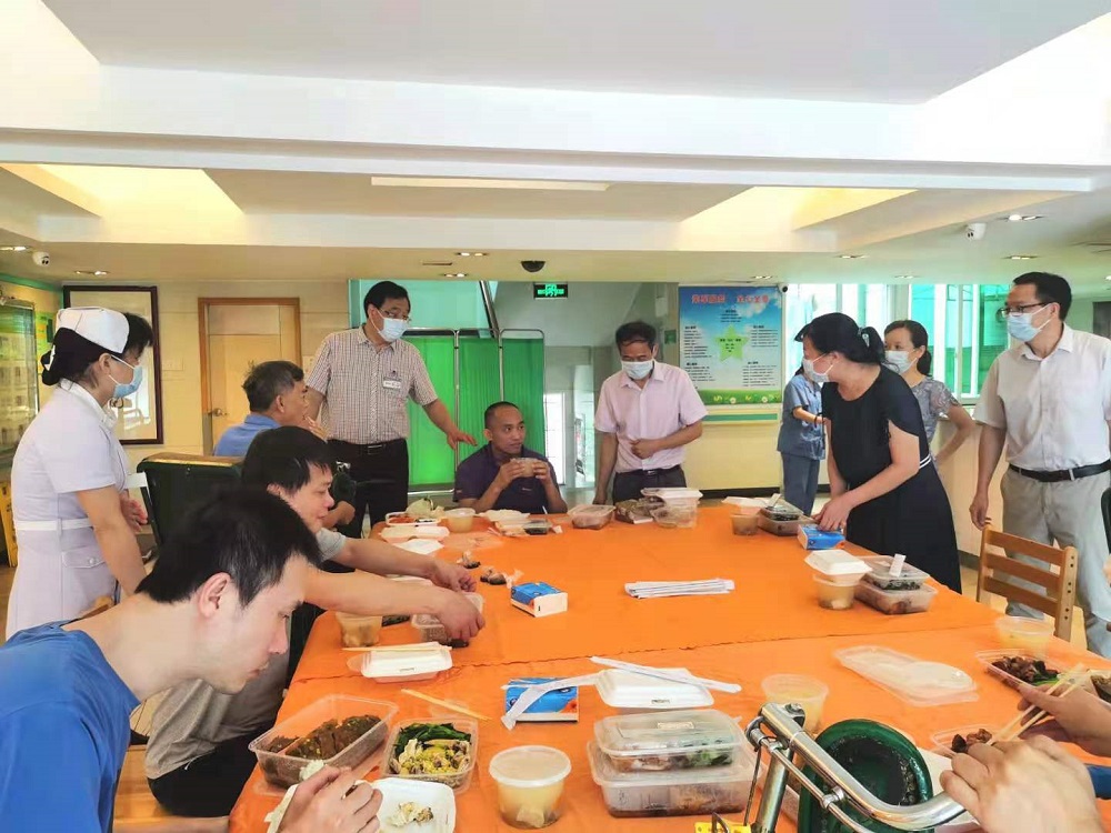 7月28日中午,医院食堂专门为荣军安排了节日加菜。院领导很关心这次加菜安排,专门对菜式和品种提出了建议,要求食堂要充分征求荣军们意见,保证荣军们吃得开心、健康和满意。当天的加菜,有白灼虾、红烧鱼、烧排骨、烧肉和白切鸡,还有美味靓汤。荣军们吃得津津有味,对丰富的加菜竖起了大拇指。