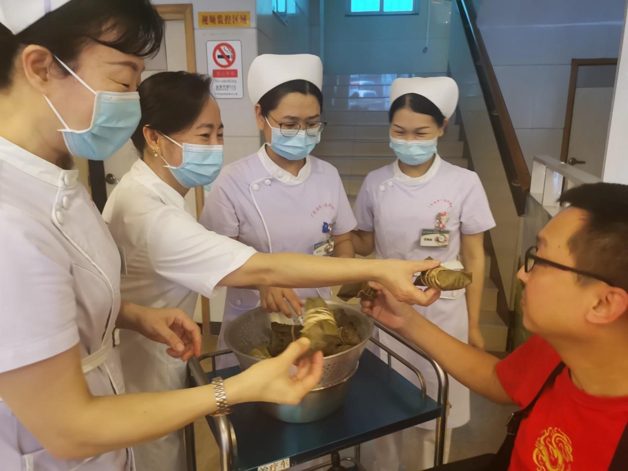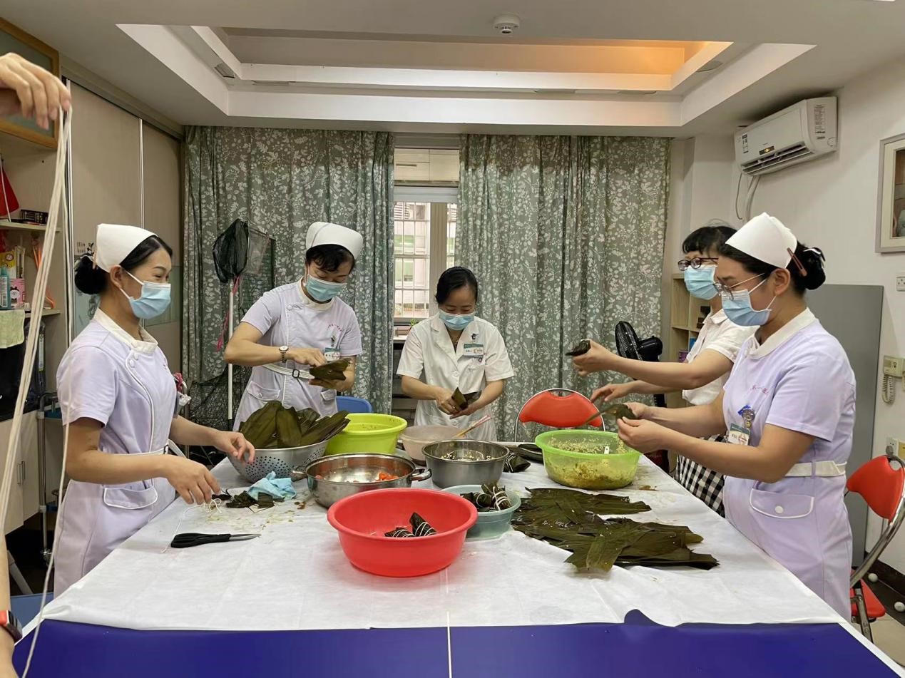 脊髓损伤科同事们在工作之余,精心准备了各种食物原材料,在社工活动室现场制作特色粽子美食。经过一个下午的忙碌,热气腾腾香喷喷的粽子终于出炉,分送到了荣军们的床前。大家愉快地分享应节美食,并对医护们的手艺赞口不绝。