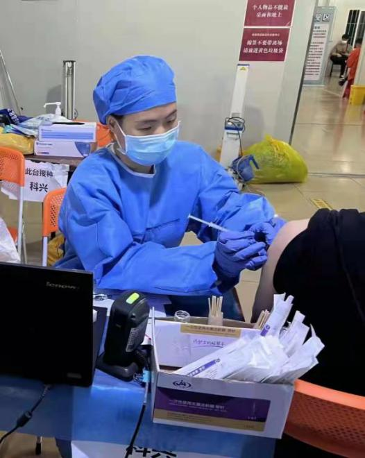 很荣幸我能参与到核酸筛查的采集及疫苗接种的工作中,作为一名护士,怀着对社会的责任心与对工作的热情,一刻也不敢懈怠。我们不断延长接种时间,就能为更多的市民接种疫苗。疫情寒冷,人心温暖。虽然每天都很累,但是想着多完成一次疫苗接种,这个城市就多增了一份抵抗力,我们便有了坚持的动力和意义。