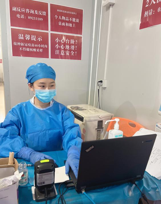 近几个月,她一直都在外面参与疫苗接种和急救配合工作,主要负责疫苗接种和急救配合工作。近期广州疫情出现反复,接种任务也逐渐加重,她积极配合社区加班加点高质量完成接种工作。有时要从早上8点一直工作到晚上8点,经常忙到忘记喝水,但是她都毫无怨言,因为接种者的每一句“谢谢”“辛苦了”,都让她倍感温暖。