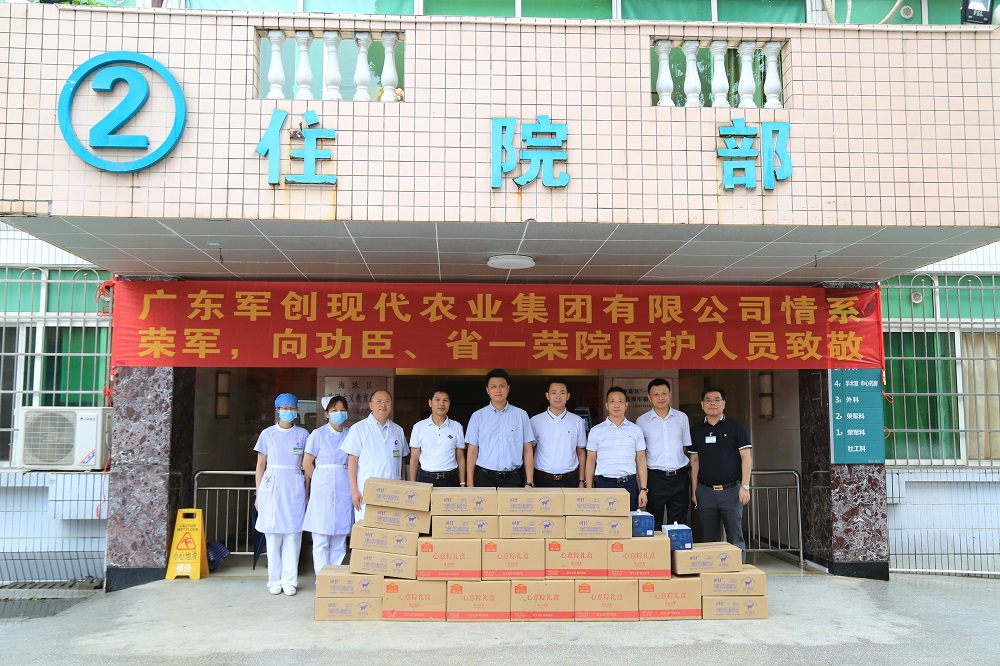 5月7日,广东军创现代农业集团有限公司一行3人在董事长钟宇洋的带领下,怀着对荣军和医院的深情厚谊前来省第一荣军医院慰问全体荣军和医护人员,送上真诚的问候祝福和一批精心准备的慰问品,为正在抗疫的荣军和医护人员们鼓劲加油。